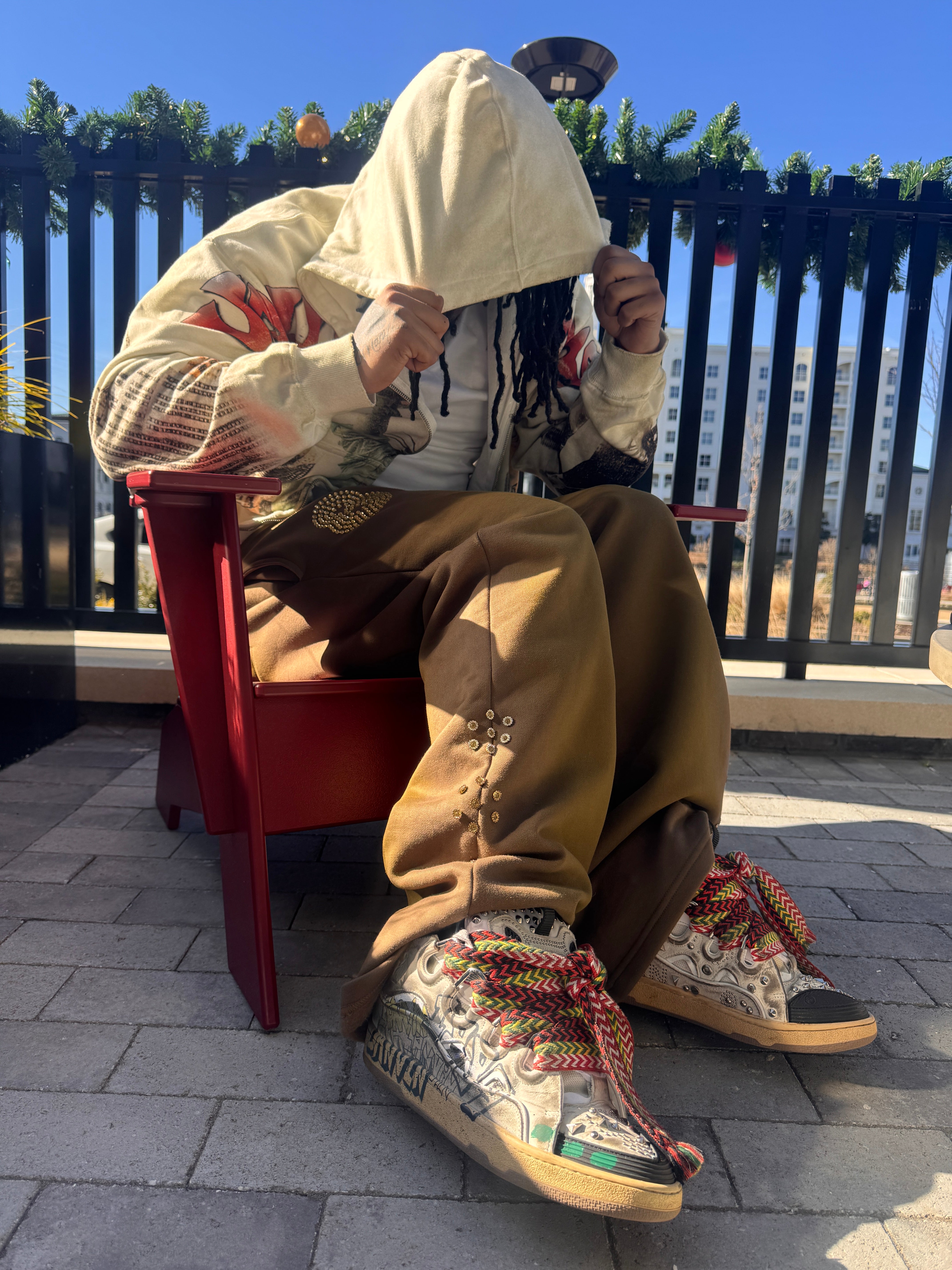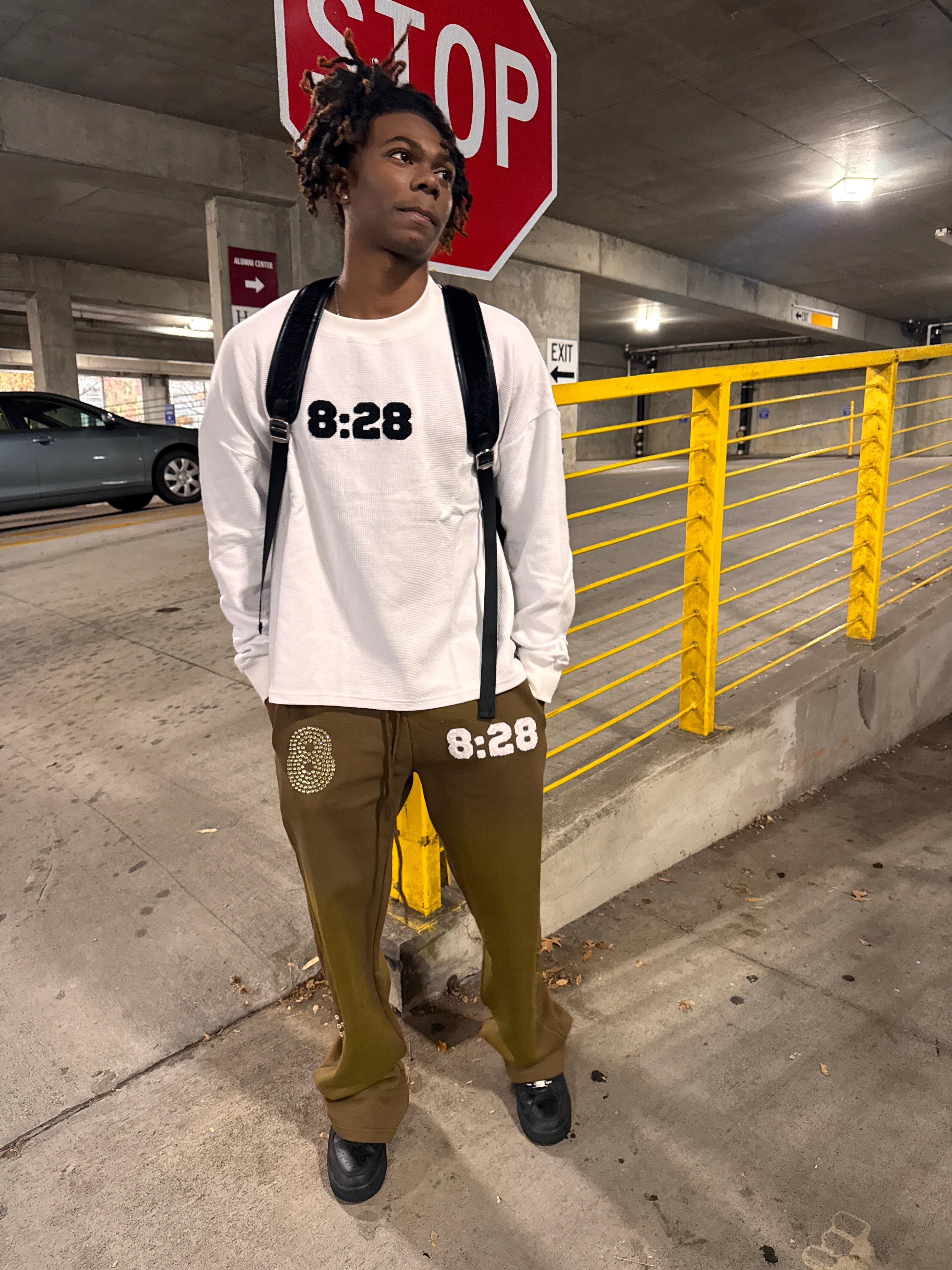 Crafted from premium heavyweight fleece, the 8:28 Studded Flare Sweatpants deliver all-day comfort with statement-making details. Featuring hand-placed rhinestone embellishments and the signature 8:28 Romans reference, this piece blends faith, craftsmanship, and modern streetwear into one bold garment.